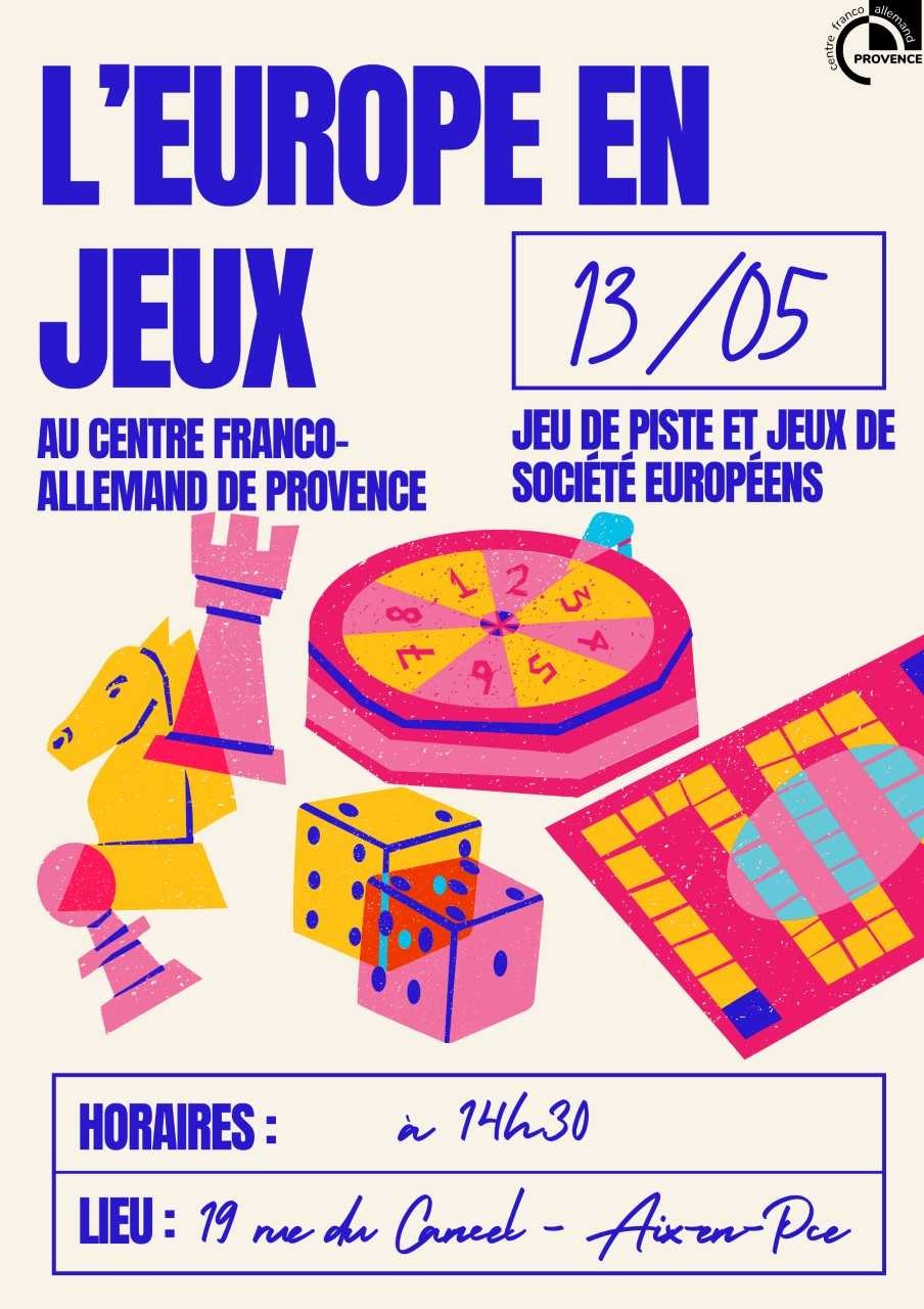 Organisiert vom Centre Franco-Allemand de Provence in Zusammenarbeit mit der Maison de l’Europe de Provence, dem Mouvement Européen Provence, Polonica, Amitié Franco-Roumaine, By the Way, der AIAPA, dem Deutsch-Französischen Jugendwerk, Remise en Jeux, Gameside Plan de Campagne und der PEEP Aix-en-Provence