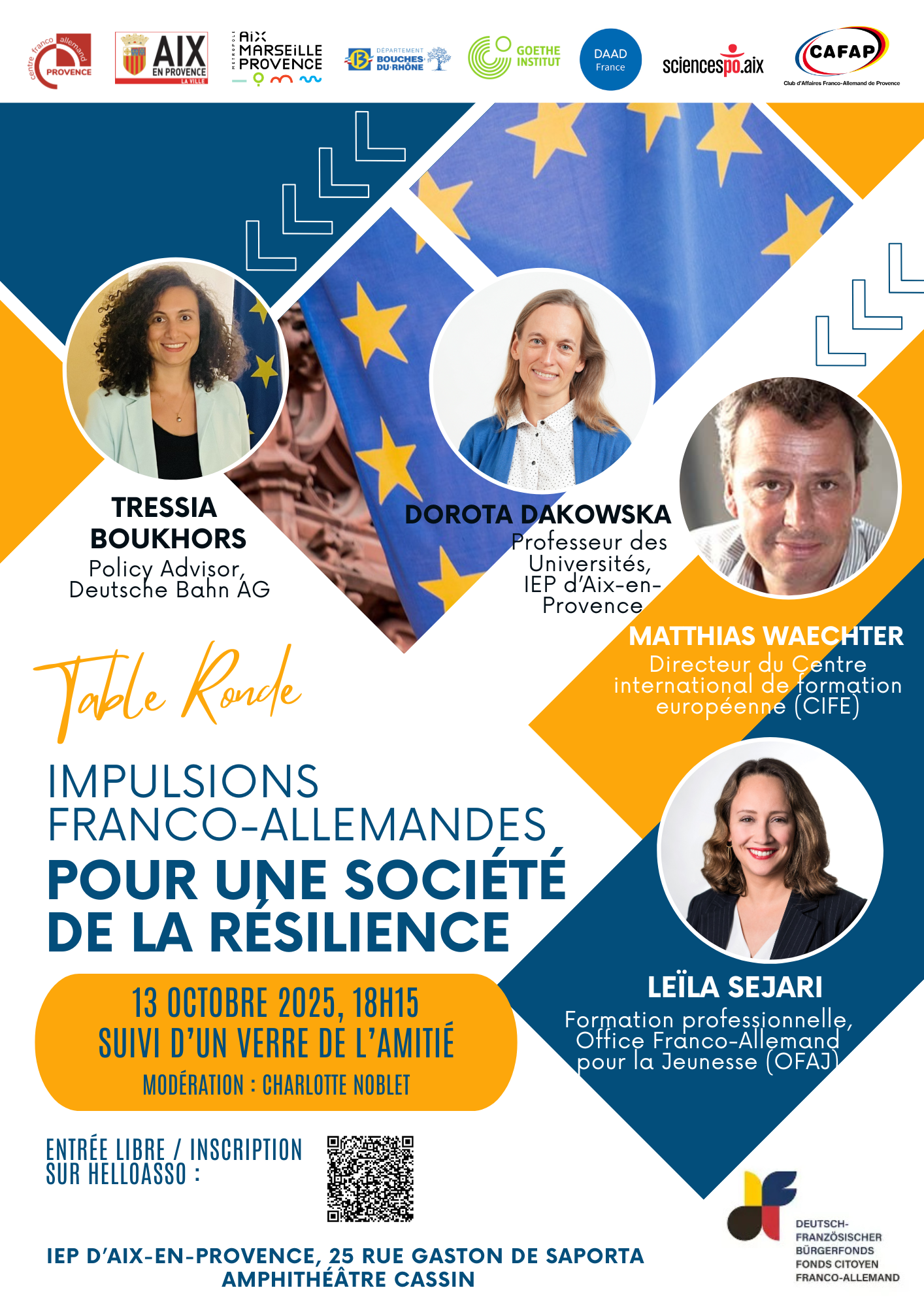 Eine öffentliche Veranstaltung, organisiert vom Centre Franco-Allemand de Provence, dem Club d’Affaires Franco-Allemand de Provence und Sciences Po Aix, mit der Unterstützung des Deutsch-Französischen Bürgerfonds.