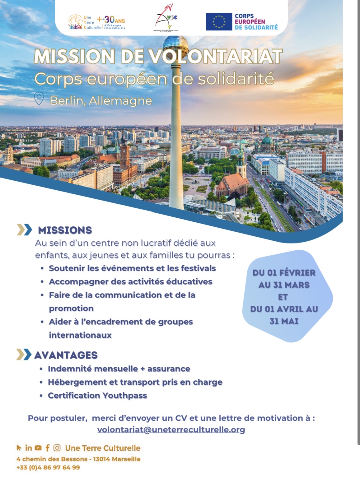 Corps européen de solidaritéBerlin, Allemagne 01 février au 31 mars et du 01 avril au…